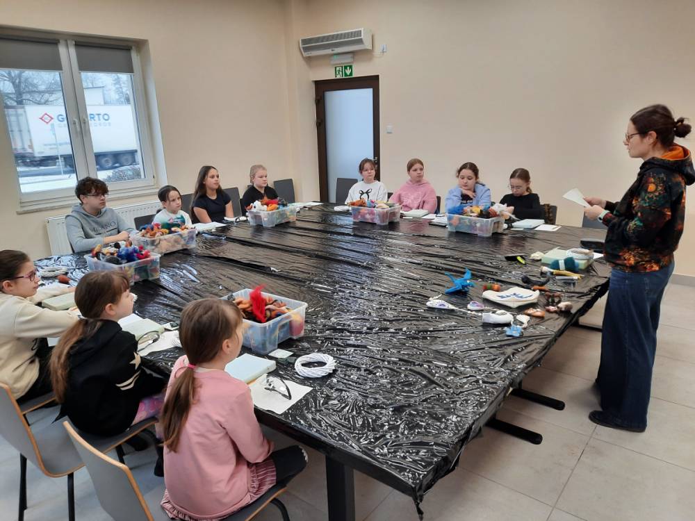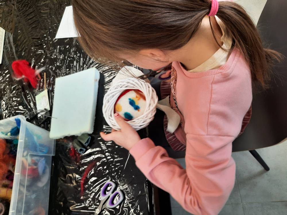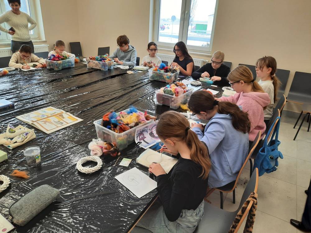 - Warsztaty z Filcowania – to technika, w której wełna jest filcowana za pomocą igły, tworząc gęsty i trwały materiał. Dzieci uczyły się, jak pracować z wełną, tworzyć wzory i kształty, oraz jak filcować na sucho.