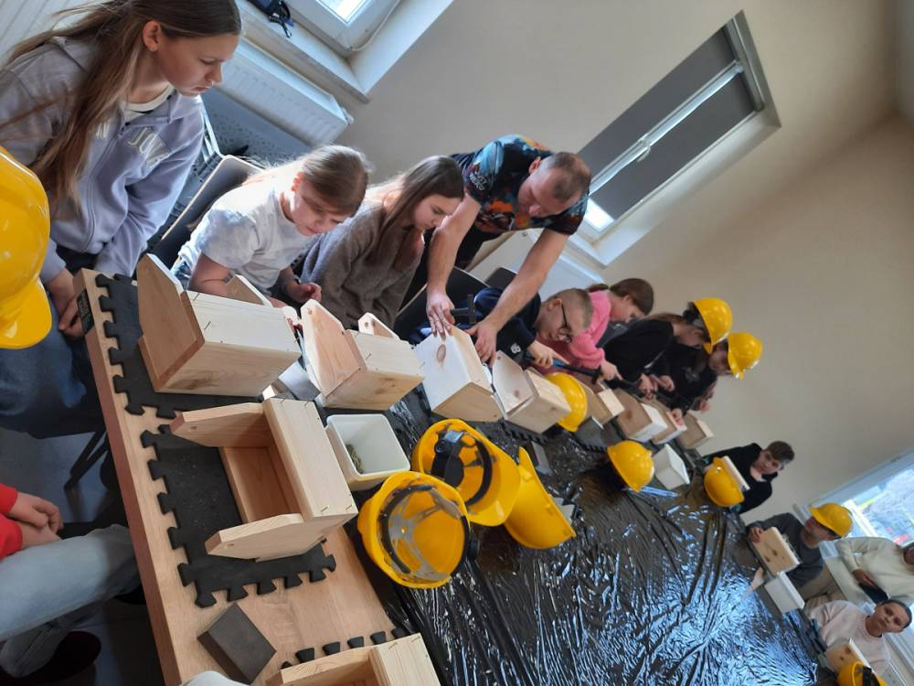 - Warsztaty stolarskie podczas których dzieci stworzyły własne drewniane skrzyneczki na wiosenne skarby! Pod okien instruktora, dzieci pracowały z drewnem i łączyły elementy skrzyneczki.