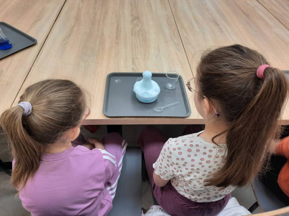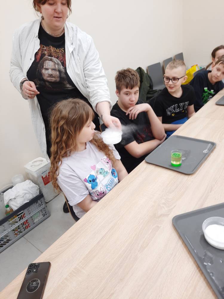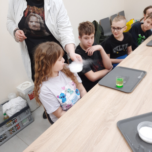 - Warsztaty Chemiczne podczas których dzieci odkryły magię… lodu! Uczestnicy obserwowali, jak lód reaguje z różnymi substancjami, tworząc niesamowite efekty.