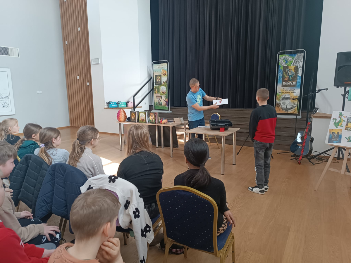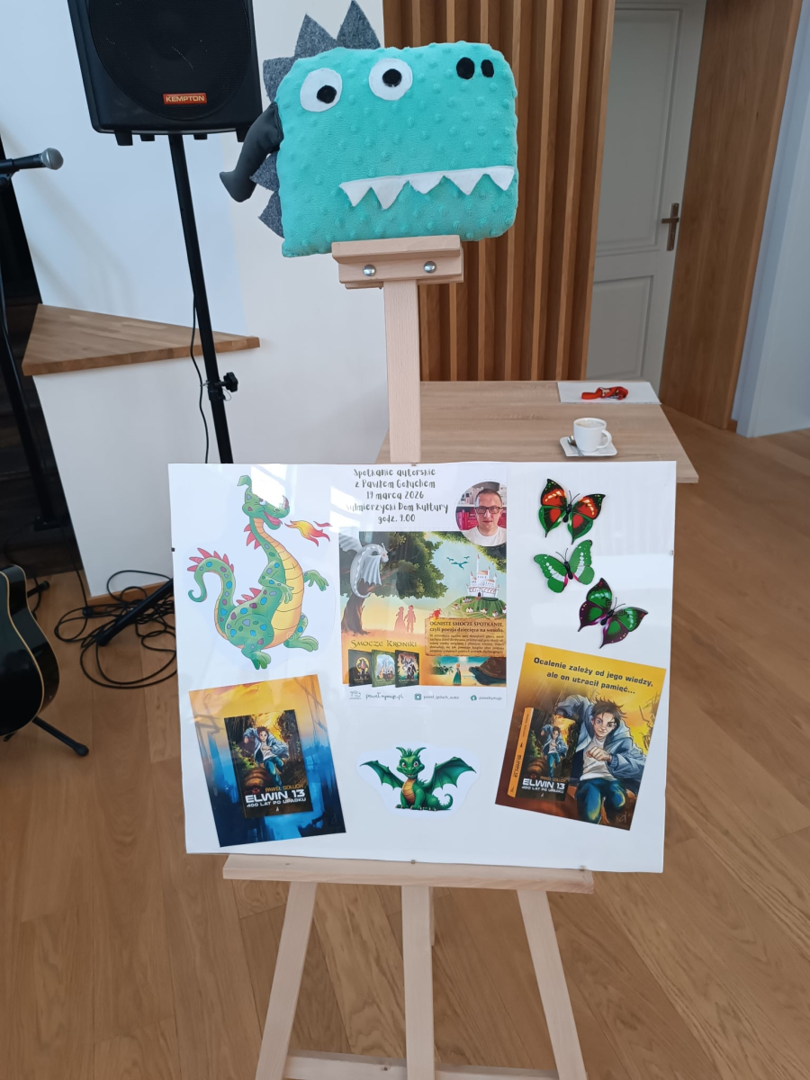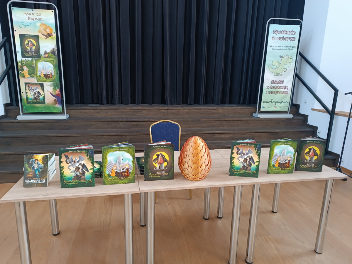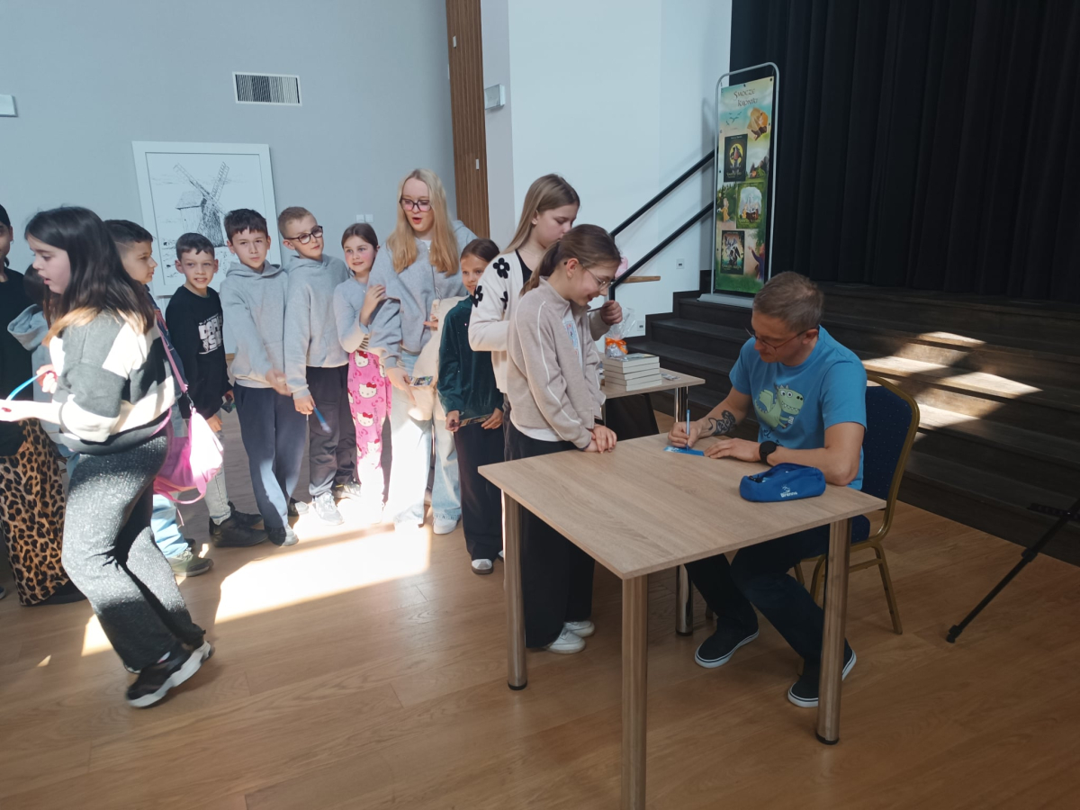 W związku z zbliżającym się Dniem Poezji, dnia 19 marca mieliśmy zaszczyt gościć pana Pawła Gołucha, znanego pisarza i autora wielu wspaniałych książek dla dzieci i młodzieży takich jak „Smocze Kroniki” i „Elwin 13”. Pan Paweł opowiadał o swoich książkach, inspiracjach i procesie twórczym. Uczniowie mieli okazję dowiedzieć się więcej o pracy pisarza i usłyszeć fragmenty jego książek. Spotkania były bardzo ciekawe i inspirujące. Atmosfera była miła i swobodna, a wszyscy uczestnicy byli bardzo zadowoleni. Na zakończenie każdy uczestnik dostał od autora zakładkę do książek, na której autor mógł złożyć swój autograf oraz dzieci mogły zakupić książki z dedykacją i smocze poduszki autora!